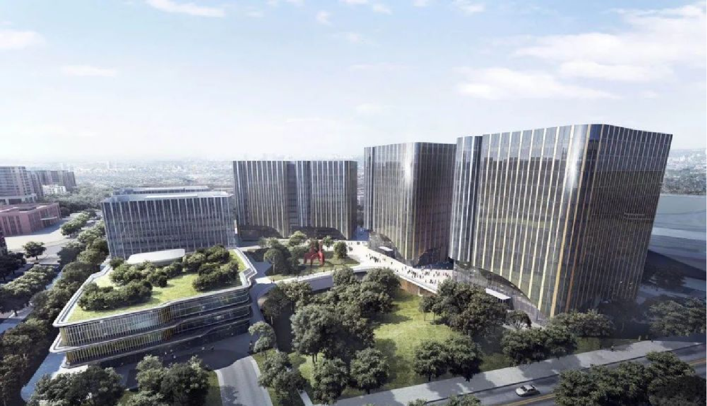 科技園項目一期總建筑面積約22.5萬平方米,包含6棟研發(fā)樓和2層地下車庫(地下共3層,一二期地下相互聯(lián)通),還設(shè)有下沉廣場和商鋪,敞亮的下沉廣場將所有建筑連在了一起。T6樓設(shè)置了戶外屋頂花園,特別鋪設(shè)